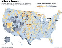 The NYTimes has an interresting article on the relative relationship between death rates and birth rates in urban areas. The focus is Pittsburgh, Pennsylvania, where one marker of the ascendency of dying over birthing is a dramatic drop in school children--in the past 20 years the number of children being served by the public schools has gone from 70,000 to 30,000!